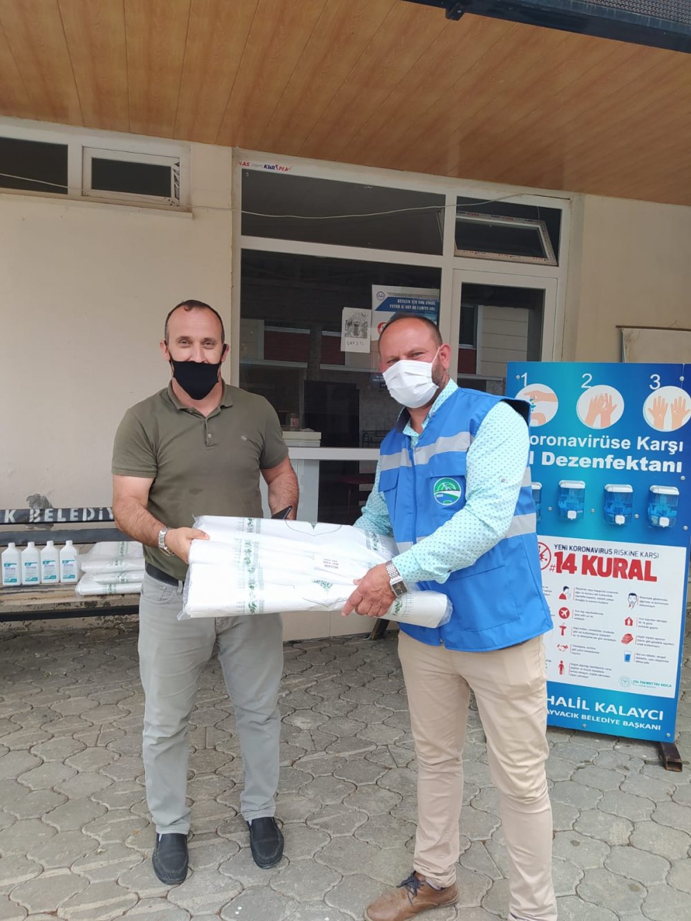 Pazar yeri girişine vatandaşların kullanması için el dezenfektan standı kuruldu. Ayrıca pazarcı esnaflarına dezenfektan ve maske dağıtımı yapıldı.